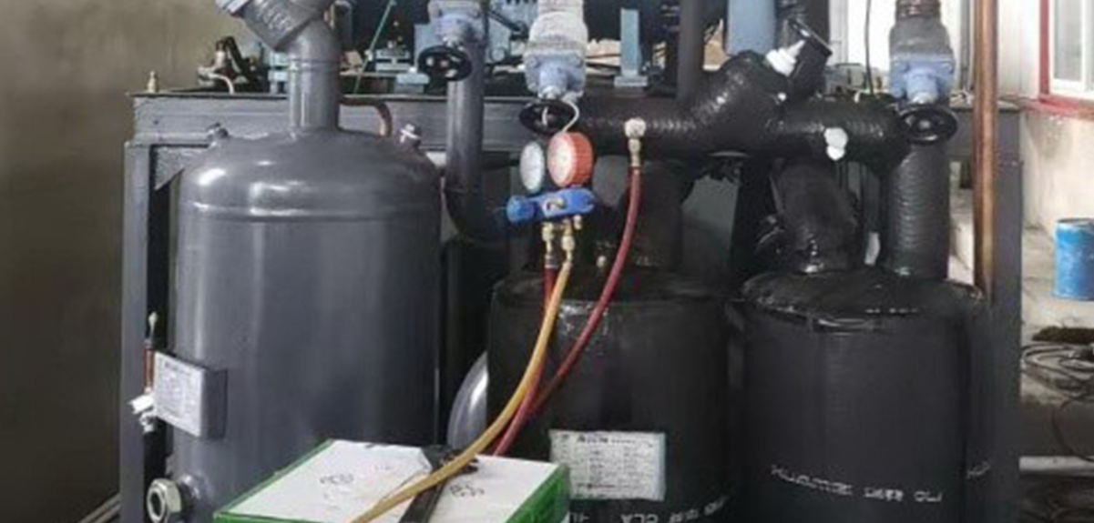 速冻猪头肉及肉下水(托盘入库),常温20℃入库,冻至中心温度-15℃,速冻冷库1间,面积:84m2  ;樯柚茫貉∮梅欠补示鶯B-PLUS系列单级高效低温冷冻压缩机2台并联,R22冷媒,设计库温-35℃,工况为:-40/35℃。